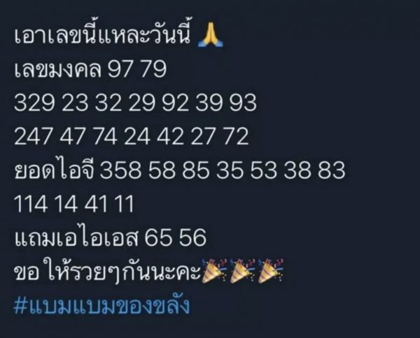 เรียกว่ามาแรงในทุก ๆ วันใกล้หวยออกก็ว่าได้ค่ะ จะเป็นอะไรไปได้ นอกจาก #แบมแบมของขลัง แฮชแท็กมาแรงในทวิตเตอร์ โดยเฉพาะอย่างยิ่งช่วงใกล้วันหวยออก ที่กลายเป็นแฮชแท็กประจำตัวของ ไอดอลเคป๊อปชื่อดัง สัญชาติไทย อย่างหนุ่ม แบมแบม กันต์พิมุกต์ ภูวกุล หรือ แบมแบม GOT7 ที่มักจะให้โชคกับแฟนคลับอยู่เป็นประจำ ซึ่งส่วนใหญ่เลขที่เหล่าอากาเซ่ เลือกไปเสี่ยงนั้น ก็มักจะเป็นเลขที่อยู่รอบตัวของหนุ่มแบมแบมนั่นเอง ที่ผ่านมาไม่ว่าจะเป็น เลขวันเกิด /เลขเดือนเกิด / ปีเกิด เลขที่เล่นกับแมว เวลาไลฟ์ รอยสัก เรียกว่าสารพัดที่แฟนคลับจะนำมาตีเป็นตัวเลขได้