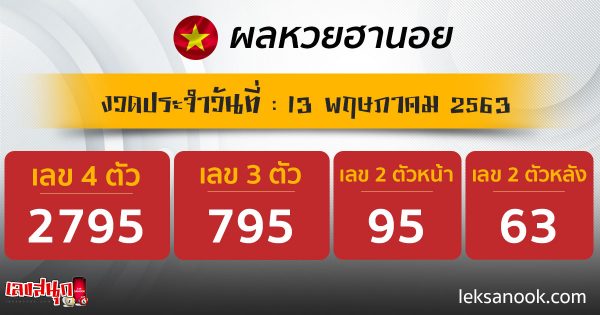 ผลหวยฮานอย วันที่ 13 พ.ค. 63