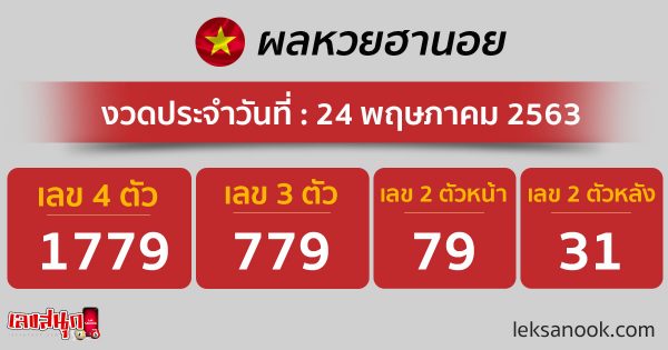 ผลหวยฮานอย วันที่ 24 พ.ค. 63