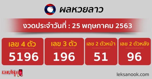 สรุป ผลหวยลาว วันที่ 25 พ.ค. 63 <