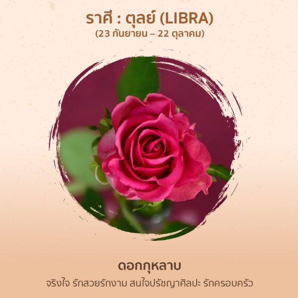 ดอกกุหลาบ คือสัญลักษณ์ของการแสดงออกเรื่องต่างๆ ด้วยความจริง คุณสื่อความอารมณ์และความคิดของตัวเองผ่านทางการกระทำ รวมถึงผลงานต่างๆ คุณชอบความสวยงาม และความคลาสสิก คุณมีความสนใจเรื่องแนวปรัชญา บทกลอนและศิลปะ เพราะคุณมองเห็นความสวยงาม และความจริงในสิ่งเหล่านั้น คุณชอบอยู่ร่วมกับครอบครัว และคนที่สนิทหรือคุ้นเคย พูดคุย เดินเล่น และชื่นชมธรรมชาติ