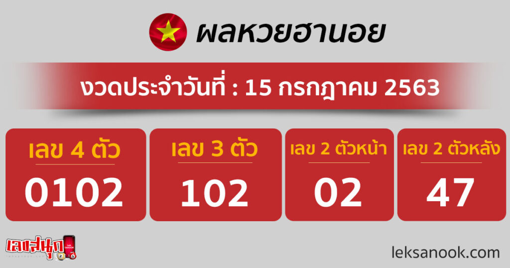 เช็กเลย! ผลหวยฮานอย วันที่ 15 ก.ค. 63