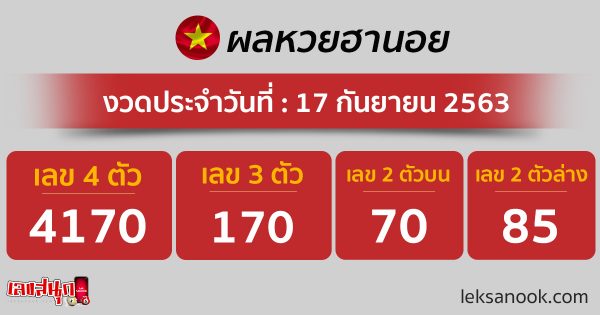 ตรวจหวยฮานอย วันที่ 17/9/63 อัปเดตผลหวยฮานอย ได้ที่นี่!