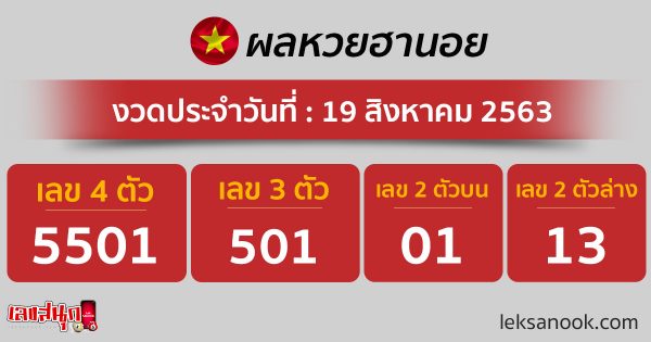 > ตรวจผลหวยฮานอย วันที่ 19 ส.ค. 63