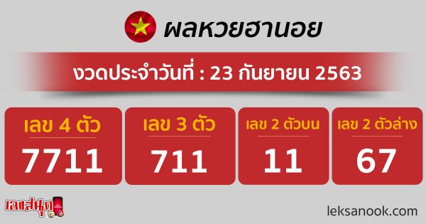 ตรวจหวยฮานอย วันที่ 23/9/63 อัปเดตผลหวยฮานอย ได้ที่นี่!