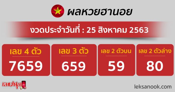 > ตรวจผลหวยฮานอย วันที่ 25 ส.ค. 63