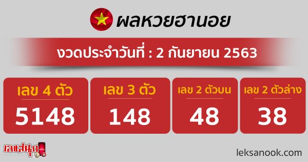 > ตรวจผลหวยฮานอย วันที่ 2 ก.ย. 63