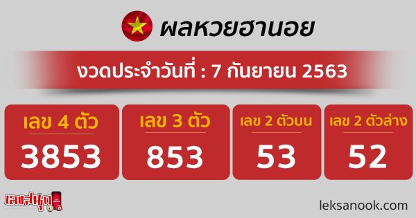 ตรวจหวยฮานอย วันที่ 7/9/63 อัปเดตผลหวยฮานอย ได้ที่นี่!