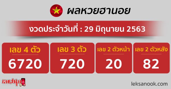 ผลหวยฮานอย วันที่ 29 มิ.ย.
