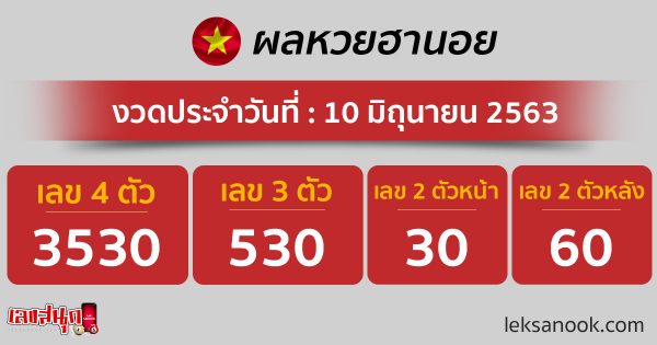 ตรวจผลหวยฮานอย วันที่ 10 มิ.ย. 63