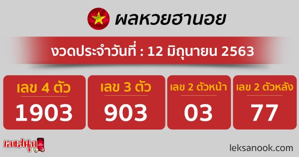 เช็กเลย! ผลหวยฮานอย วันที่ 12 มิ.ย. 63