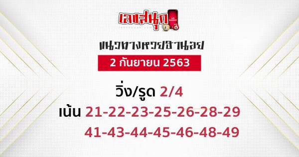 แนวทางเลขเด็ด แนวทางหวยฮานอย 2/9/63 คือ เลข 21-22-23-25-26-28-29 / 41-43-44-45-46-48-49 สำหรับแนวทางเลขเด็ด หวยดัง หวยฮานอย หวยลาว หรือ แนวทางเลขสลากกินแบ่งรัฐบาล ที่ทางเว็บไซต์เลขสนุก นำมาเสนอให้กับเหล่านักเสี่ยงโชคทุกคนนั้น เป็นเพียงแค่แนวทางเลข ที่เรานำมาจากหลากหลายสำนักเท่านั้น การเลือกตัวเลขเพื่อนำไปเสี่ยงโชค ขึ้นอยู่กับการพิจารณาของแต่ละบุคคล และขอสนับสนุนให้เสี่ยงโชคกันอย่างถูกกฎหมาย