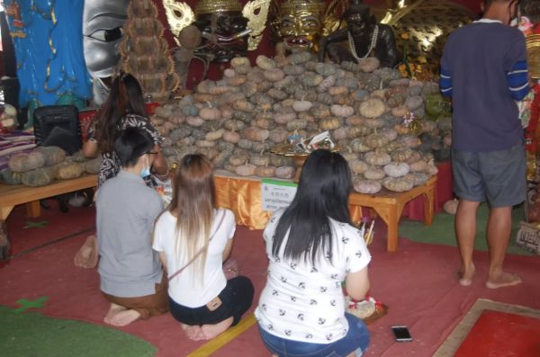ภายในอาศรมฤาษีเณร ธาตุพุทธคุณ บริเวณริมถนนสายบางปะอินบางบัวทอง ใกล้กับศูนย์ศิลปาชีพบางไทร ม.4 .โพแตง อ.บางไทร จ.พระนครศรีอยุธยา คึกคักตั้งแต่ยังไม่ถึงวันหวยออก จากการที่มีนักเสี่ยงโชคเดินทางเข้ามากราบไหว้สิ่งศักดิ์สิทธิ์ต่อเนื่อง