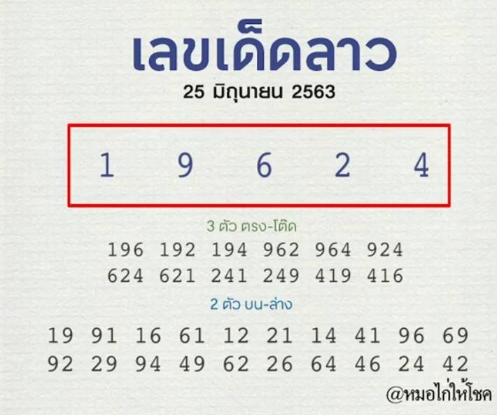 สรุป เลขเด็ดหวยลาว 25/06/63