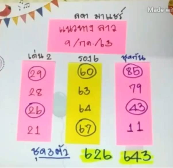 เลขเด็ดหวยลาวงวดประจำวันที่ 9/7/63 จากคนใบ้หวย Channel มีเลขดังนี้