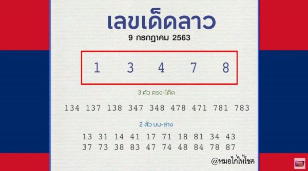 เลขเด่นหวยลาว ขายดี ได้แก่ 1-3-4-7-8