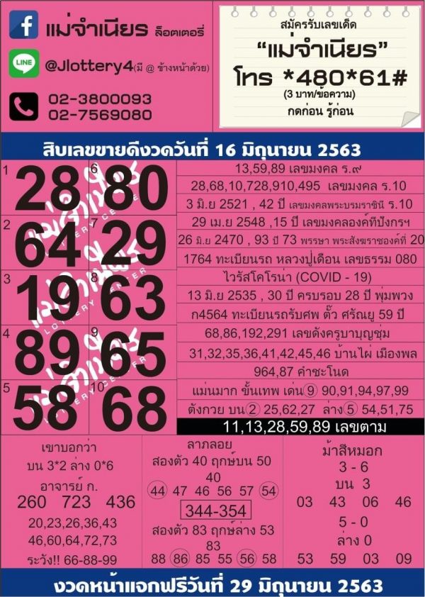 ? โค้งสุดท้าย! รวม เลขเด็ด 16/06/63