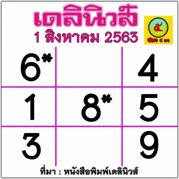 2. เลขเด็ด หวยเดลินิวส์ 1/8/63