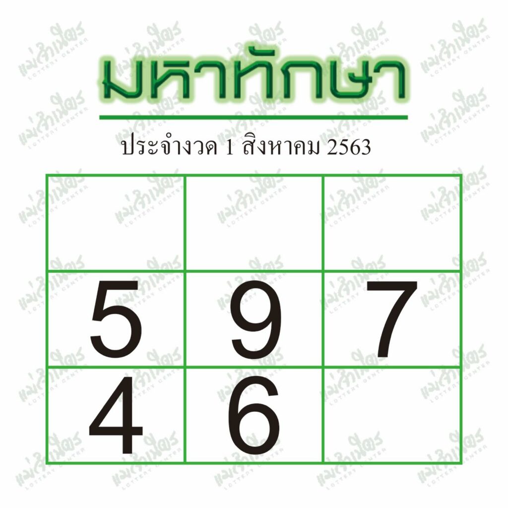 - เลขเด่นงวดนี้ ได้แก่ 5-9-7-4-6
