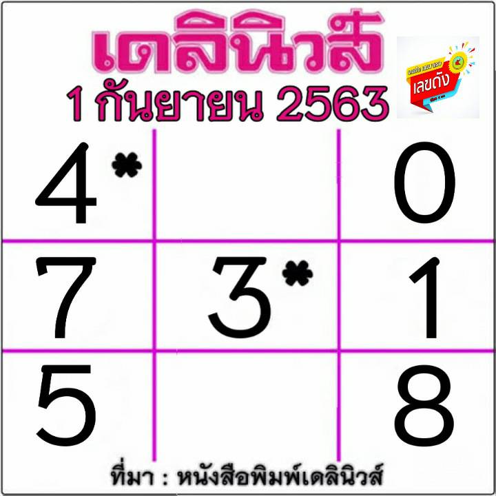 2. เลขเด็ด หวยเดลินิวส์ 1/9/63