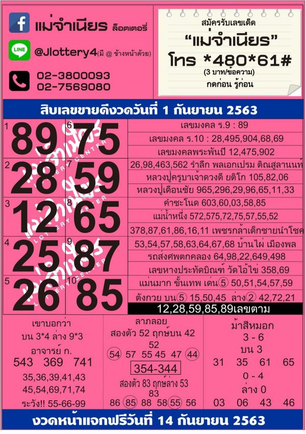8. หวยแม่จำเนียร 1/9/63 เลขขายดี 10 อันดับ