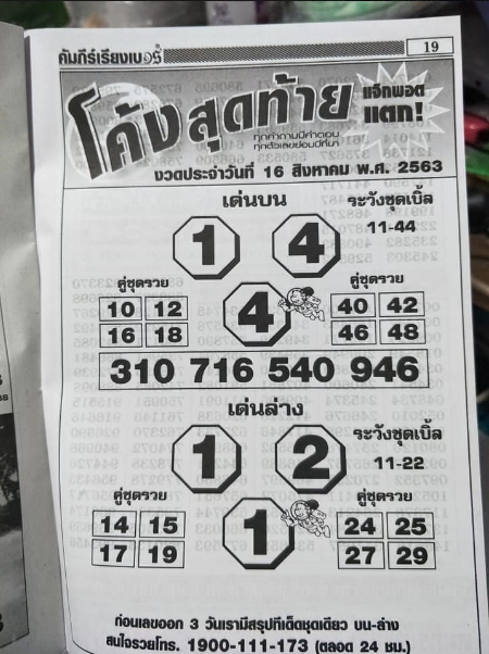โค้งสุดท้าย! รวม เลขเด็ด 16/8/63