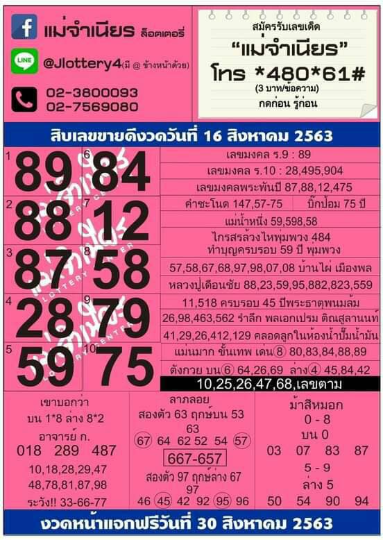 8. หวยแม่จำเนียร 16/8/63 เลขขายดี 10 อันดับ