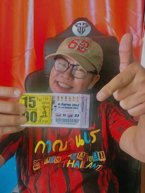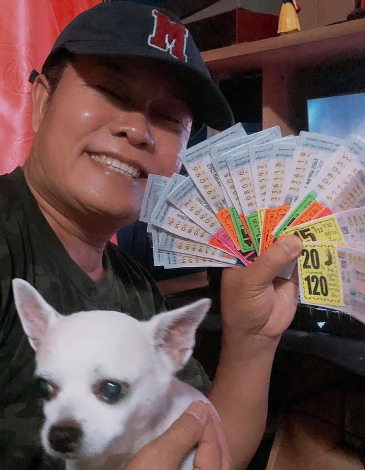 โดยเจ้าตัวได้โพสต์ภาพตัวเองที่ถือลอตเตอรี่อยู่ปึกใหญ่ หลากหลายเลขในมือ ลงในเฟซบุ๊ก มนต์สิทธิ์ คำสร้อย และข้อความฝากถึงสาวกเลขเด็ดของตัวเองด้วยว่า