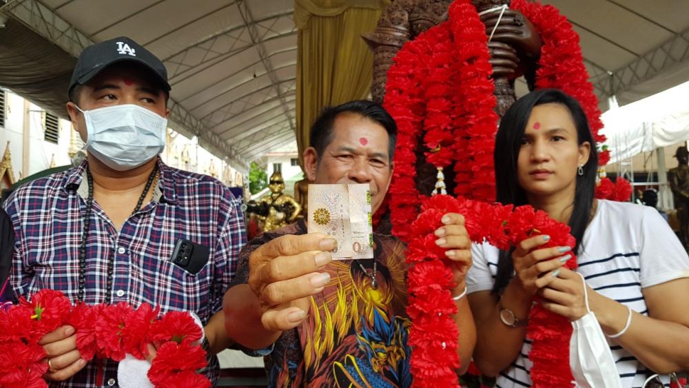 หลังเสร็จพิธีได้มีนักเสี่ยงโชคขอให้ เสี่ยชัช เอาธนบัตรฉบับละ 1,000 บาท ที่หลวงพ่อแป๊ะผูกสายสิญจน์รับขวัญที่ข้อมือออกมาโชว์ให้ดู เพื่อนำตัวเลขไปเสี่ยงโชค เสี่ยชัชจึงดึงออกจากข้อมือเปิดให้สาธุชนดู ได้เลข 4G 3653641 ซึ่งบางคนบอกว่าจะนำเลขท้าย 641 ไปหาซื้อลอตเตอรี่ตามแผง เพียงแค่ไม่ถึง 5 นาที เลขดังกล่าวขายหมดเกลี้ยงทุกแผง