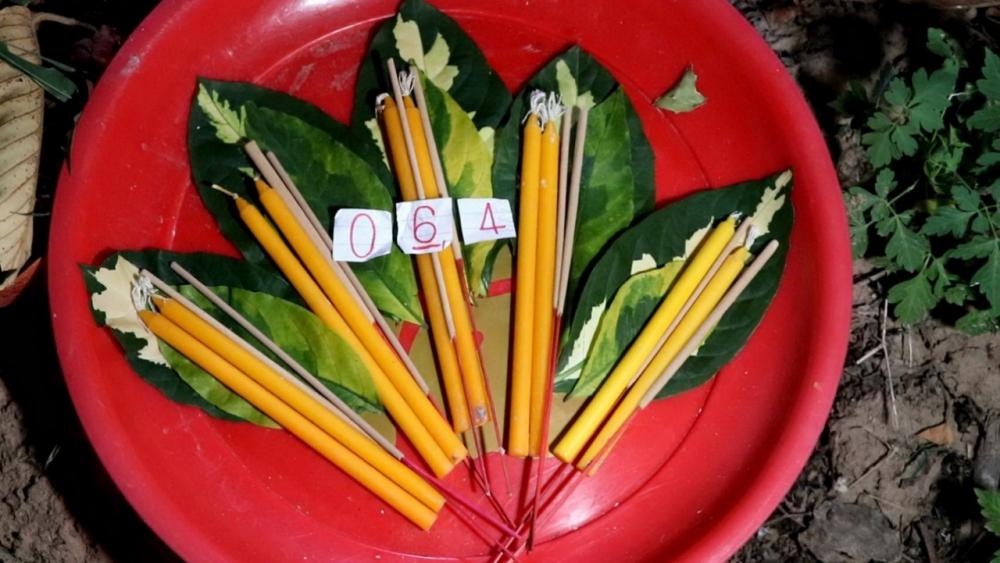 พบว่า พญาบึ้ง ได้คาบกระดาษหมายเลข 064 ไว้ที่ปากรู คอหวยเตรียมเอาไปซท้อหวยงวดนี้ต่อ 16 เมาายน 2565
