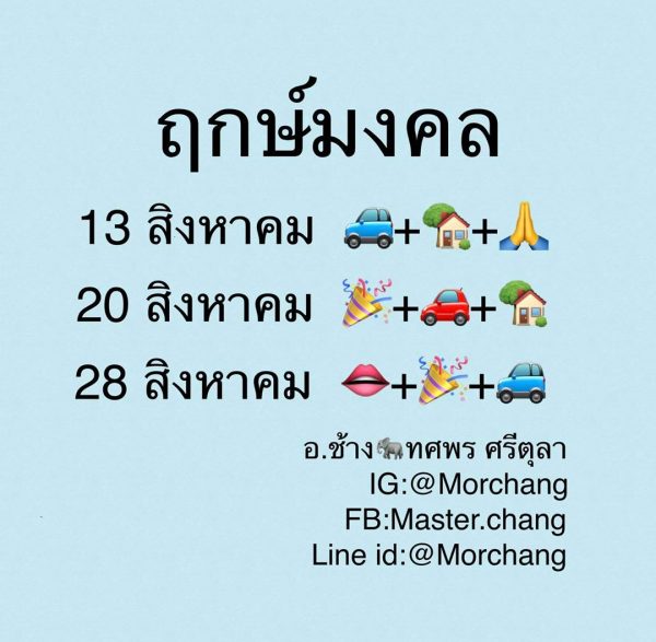 ฤกษ์มงคล เดือนสิงหาคม โดย หมอช้าง ทศพล ศรีตุลา