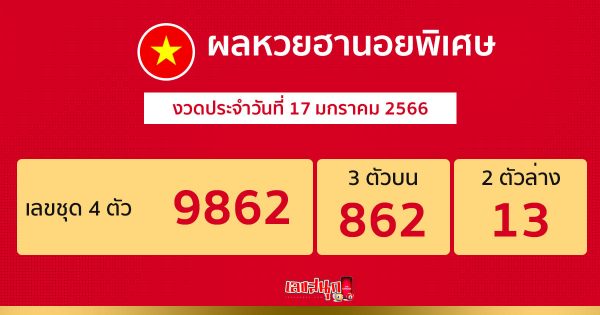 ตรวจผลหวยฮานอยพิเศษ วันที่ 17 มกราคม 2566
