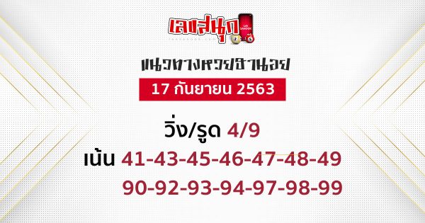 หวยฮานอย 17/9/63 คือ เลข 41-43-45-46-47-48-49 / 90-92-93-94-97-98-99 สำหรับแนวทางเลขเด็ด หวยดัง หวยฮานอย หวยลาว หรือ แนวทางเลขสลากกินแบ่งรัฐบาล ที่ทางเว็บไซต์เลขสนุก นำมาเสนอให้กับเหล่านักเสี่ยงโชคทุกคนนั้น เป็นเพียงแค่แนวทางเลข ที่เรานำมาจากหลากหลายสำนักเท่านั้น การเลือกตัวเลขเพื่อนำไปเสี่ยงโชค ขึ้นอยู่กับการพิจารณาของแต่ละบุคคล และขอสนับสนุนให้เสี่ยงโชคกันอย่างถูกกฎหมาย